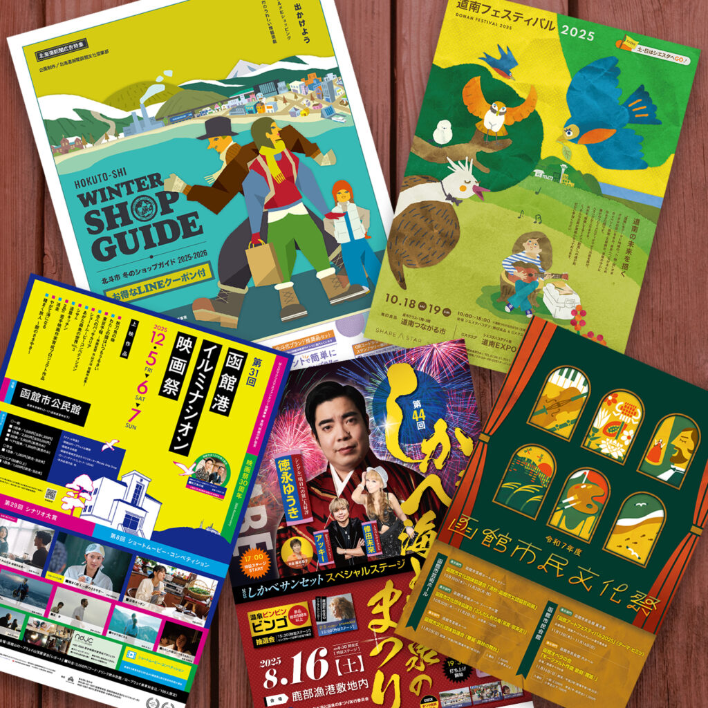 2025年のポスター・チラシデザインの実績をピックアップして掲載します。構成からイラスト作成まで弊社一括で承りました。