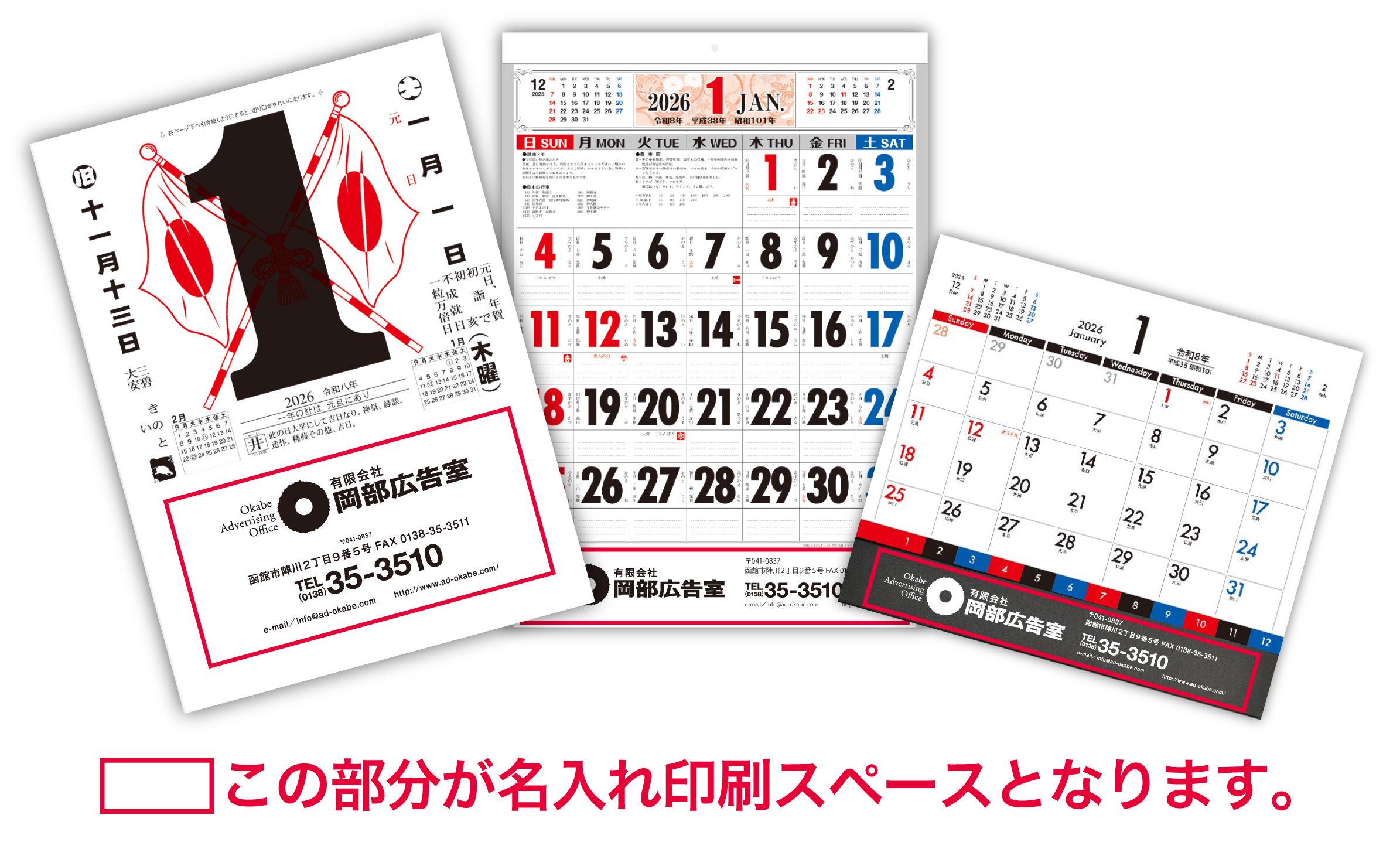 函館市・北斗市・七飯町・鹿部町・森町・木古内町のお客様でしたら、カレンダー